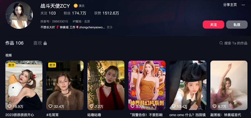 此前,爆火的《完蛋》带火了参演的6位演员。根据新抖数据显示,游戏上线一个月不到《完蛋》人气最高的钟晨瑶抖音涨粉超过百万,目前抖音粉丝数量已突破174万人。而热度紧随其后的王星辰抖音涨粉数量也逼近80万,目前累计粉丝数量达140万+。
