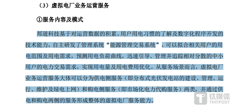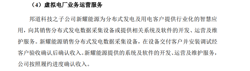 在草案中“服务、销售及盈利模式”部分与“收入确认的具体政策”部分,朗新集团对于虚拟电厂业务的描述并不一致。