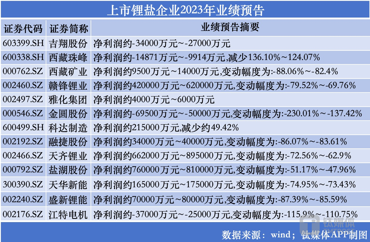 1月最后几天,随着天齐锂业(002466.SZ)、赣锋锂业(002460.SZ)等锂矿股陆续披露大幅下降的业绩预告,2023年持续崩坏的锂价导致的行业惨淡景象已经跃然纸上。