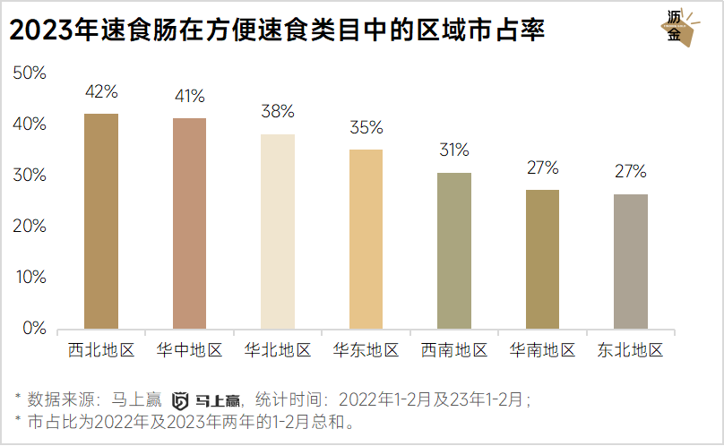 2023年速食肠在方便速食类目中的区域市占率