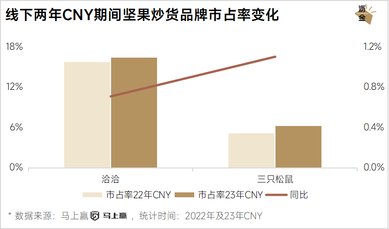 2022、2023年线下CNY期间坚果炒货品牌市占率变化