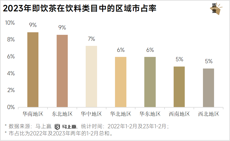 2023年即饮茶在饮料类目中的区域市占率