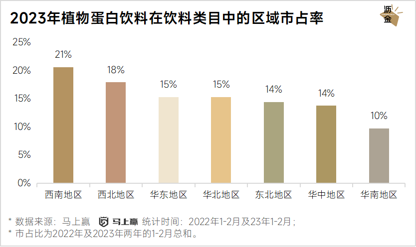 从地区销售情况看,西南地区消费者对植物蛋白饮料的需求量较大。这可能与饮食偏好相关,川渝为首的西南地区饮食偏好重盐、重辣,而植物蛋白饮料是解辣的好帮手。