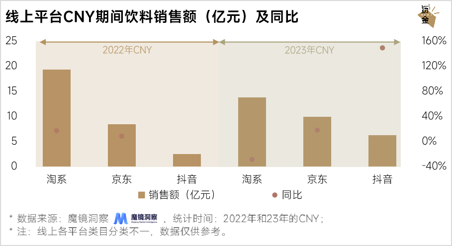 线上平台CNY期间饮料销售额及同比