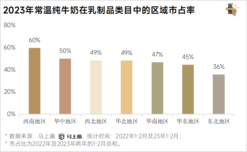 2023年常温纯牛奶在乳制品类目中的区域市占率