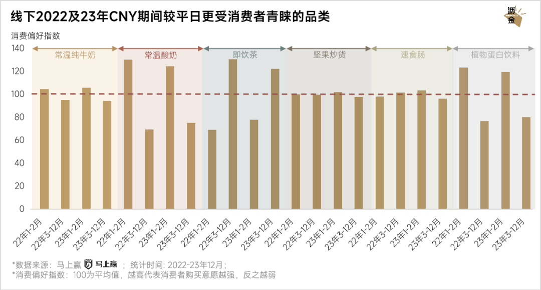 线下2022及23年CNY期间较平日更受消费者青睐的品类