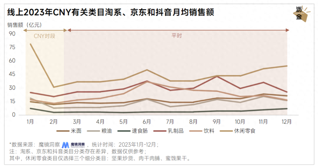 先来看重要年货品类在线上的销售情况。