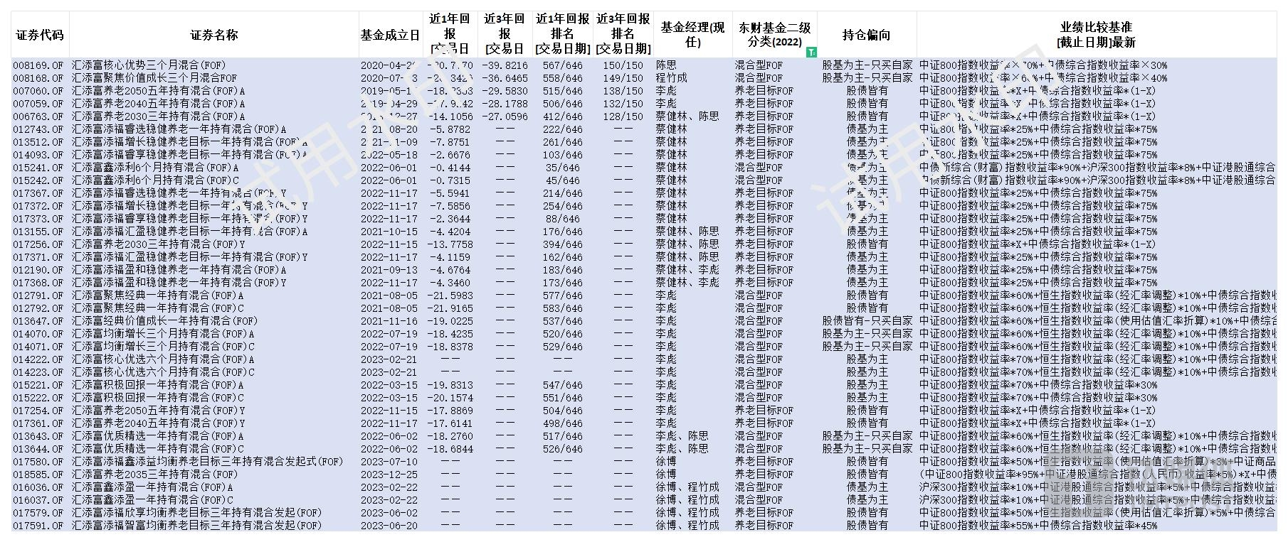 (汇添富基金旗下FOF基金近3年回报与排名,数据来源:Choice终端)