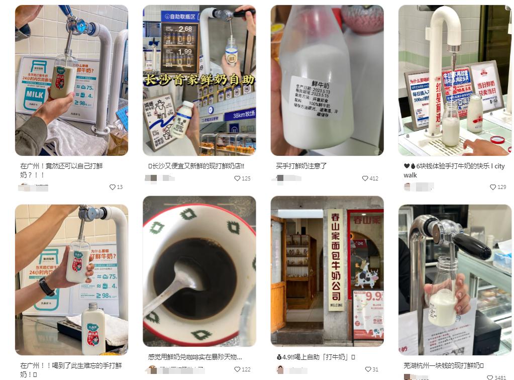 “现打鲜奶”是这一模式的另一大核心卖点。门店通过与本地乳品企业或者牧场合作,鲜奶当天配送到店,突出奶源的新鲜感和品质感。