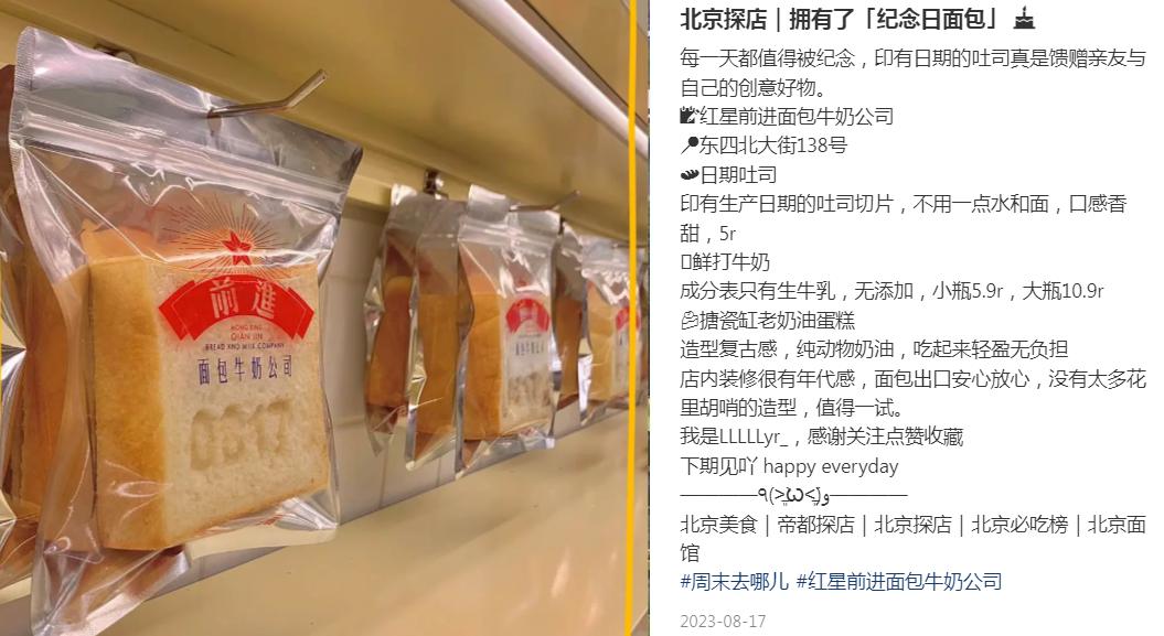 以红星前进为例,其售卖的吐司等产品的表皮上印有具体的生产日期,方便顾客一目了然判断产品是否新鲜,还能避免一些偷偷篡改生产日期的不法嫌疑,提升消费者的信任度和产品的价值感。