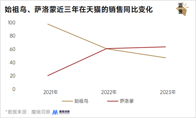 始祖鸟、萨洛蒙近三年在天猫的增速对比