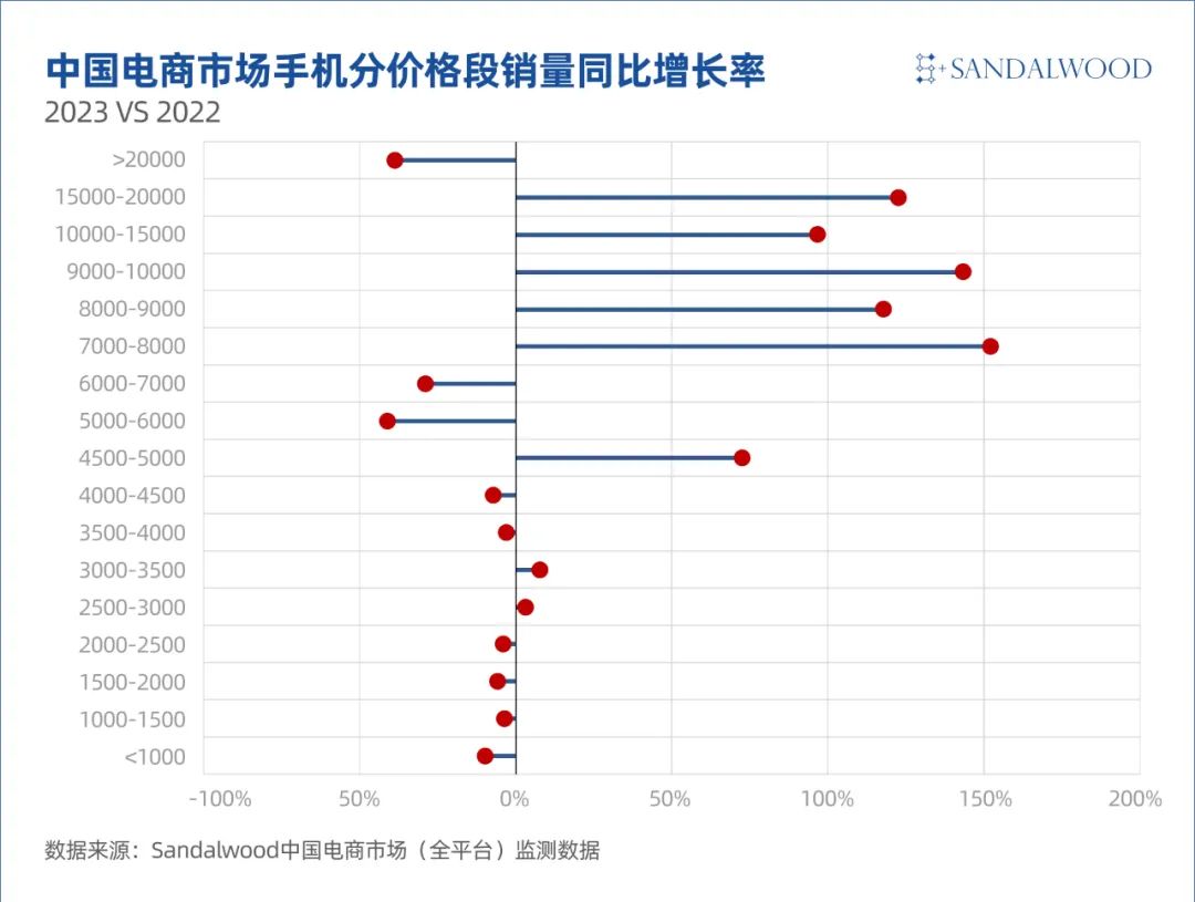 在2000至4000元价位段,一加的带动下,多家厂商加大了新品推出和价格政策的力度,使这一市场段重新回到了新品驱动的发展阶段。这些趋势共同成为了推动市场持续成长的有效动力。