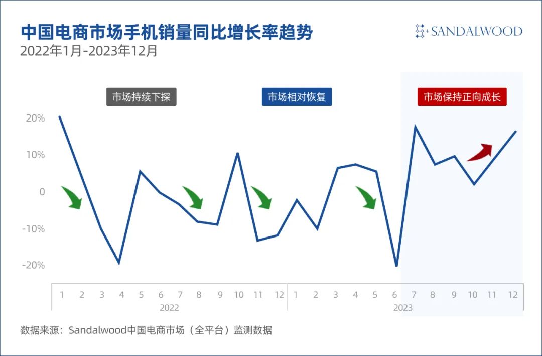 中国电商手机市场连续6个月正增长,2023年全年同比增长2%