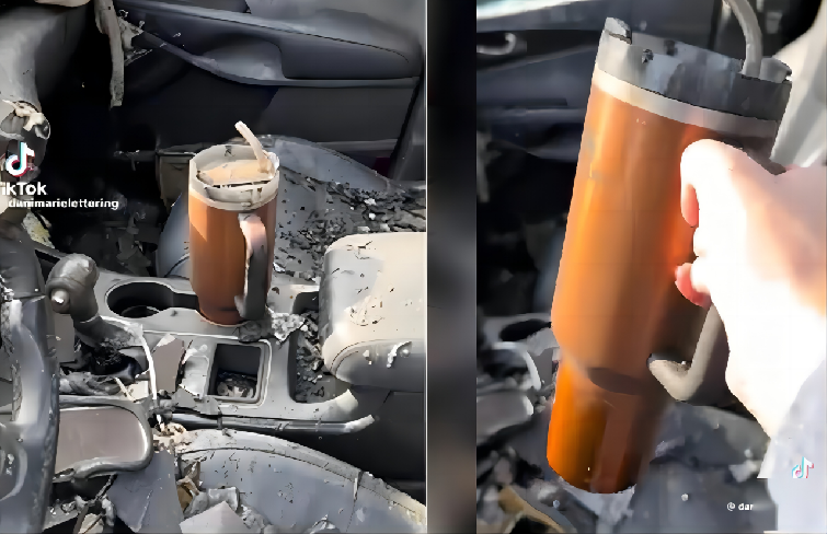 车祸现场几乎无损的Stanley保温杯。图源:网络
