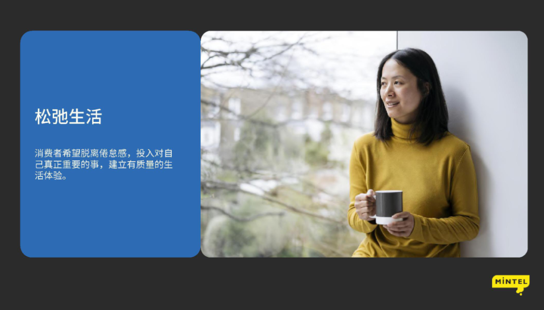 而英敏特在《2023全球消费者趋势》中称,2023年至未来五年影响全球消费市场的五大趋势,其中之一便是“松弛生活”。