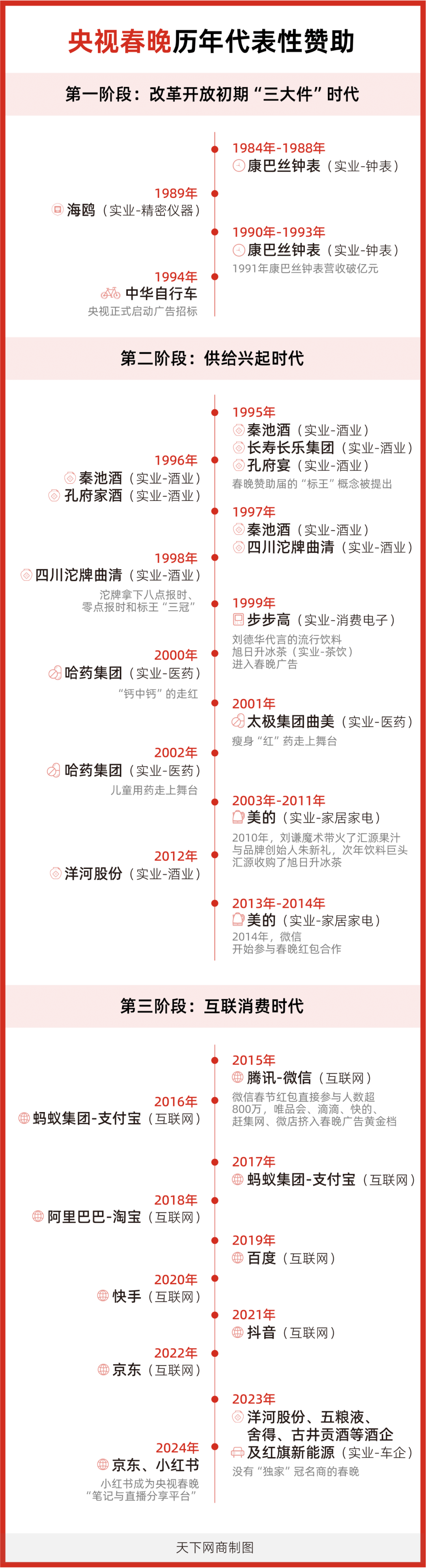 在央视春晚的江湖谱里,每一帧画面通过电视、网络扑向观众的背后,不光有数不清的经典演出与桥段,也刻着中国商业变迁的痕迹。