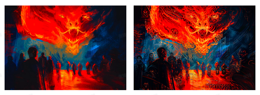 此外,“Fractality”可以控制像素的复杂性,主要是体现用户提示词的细节,更适用于山水风景及城市。