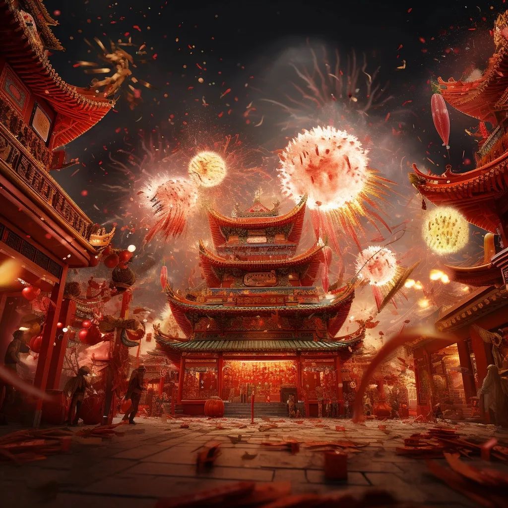 如,使用Midjourney生成一张中国新年氛围的图片: