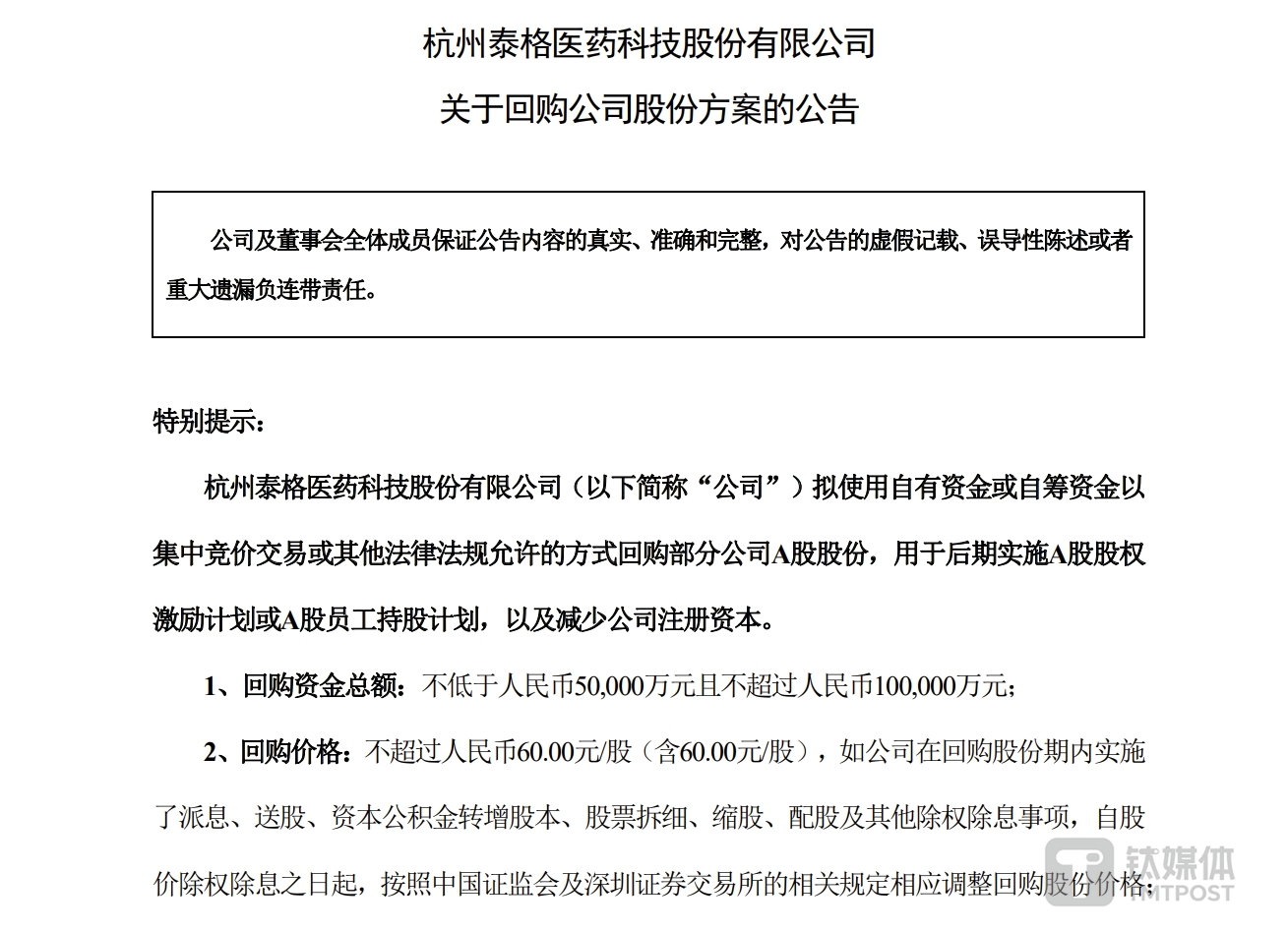 泰格医药指出,本次回购股份的期限为自股东大会审议通过本次回购股份方案之日起12个月。同时,本次股份回购计划的制定,体现了公司对长期内在价值的坚定信心,提升投资者对公司的投资信心。