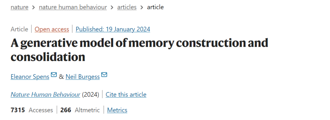 - 1. Spens, Eleanor, and Neil Burgess. "A generative model of memory construction and consolidation." Nature Human Behaviour (2024): 1-18.