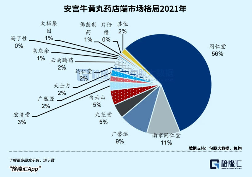 按照市场份额看,北京同仁堂一骑绝尘,占比高达56%,其次是南京同仁堂、广誉远、九芝堂等玩家。而片仔癀占比还非常之低。