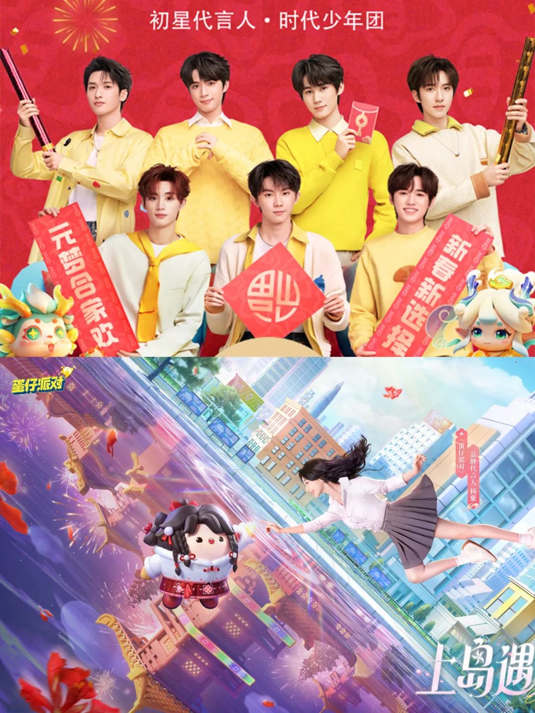 代言人上,在00后中拥有超高人气的组合“时代少年团”在游戏上线时就官宣代言了《元梦之星》,此后选秀出身的范丞丞、韩团成员宋雨琦也相继成为了代言人;没过几天,1月17日,《蛋仔派对》就宣布自家的代言人换成了同样在00后中拥有很多粉丝的演员杨紫。