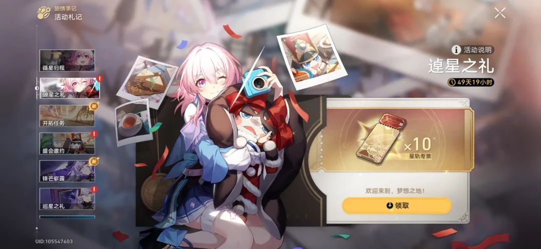 在《崩铁》的新春活动中,送上的免费抽卡次数为20抽,不仅比《原神》多了7抽,并且还不用累计登陆,而是直接领取。