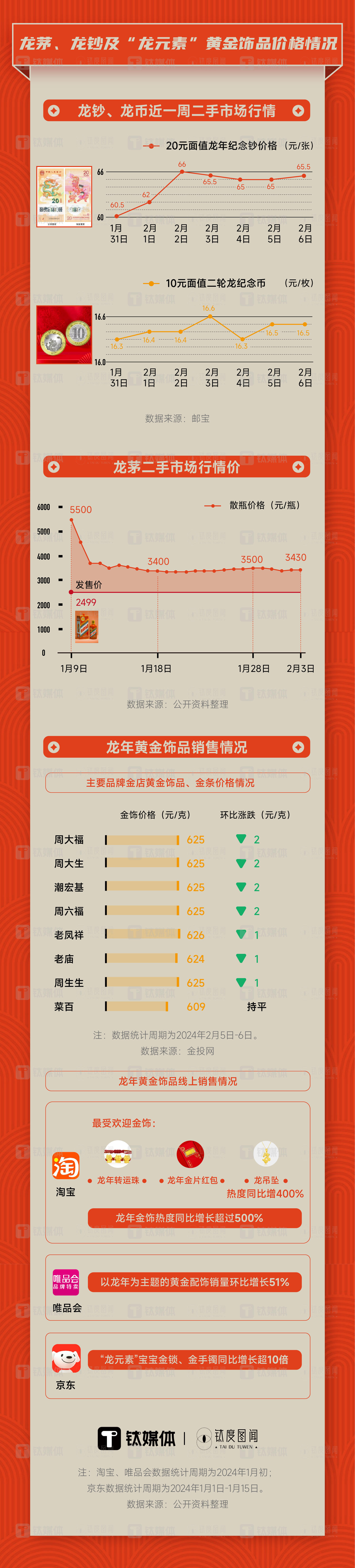 龙年金饰、纪念钞抢手,龙茅二手交易价大“跳水”