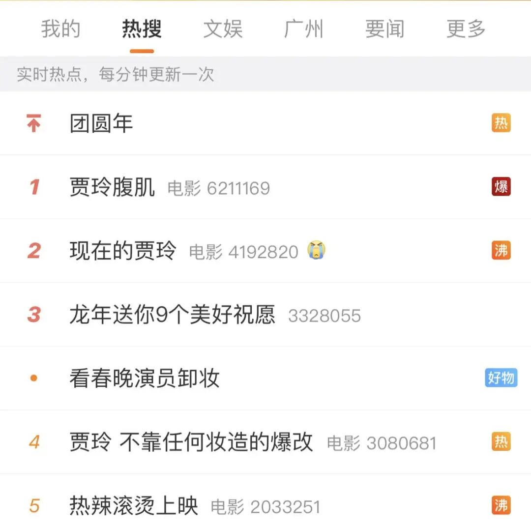 贾玲爆改现腹肌,霸榜大年初一的热搜。
