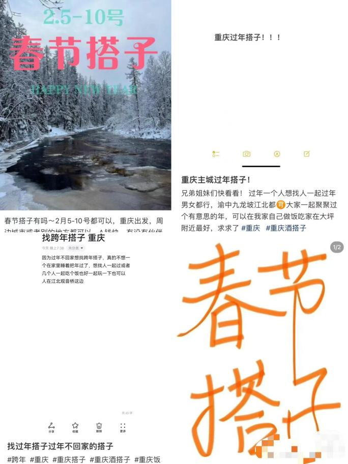 小红书上各种寻找春节搭子的发帖