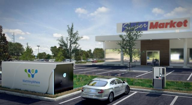 WattAnyWhere的燃料电池系统占地面积非常小,仅相当于一个停车位,但其功率达到300千瓦,能快速给充电桩供电,满足3000辆电动车充电需要。在不需要为电动车供电时,WattAnyWhere也可用于调节电力峰谷或者电价波动,或者连接到当地电网("微电网")为当地供电并提供热能和水。