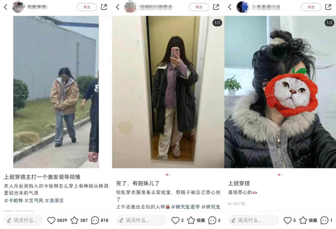 小红书上,有人直言:“在学校不穿的衣服都在公司穿了,感谢实习让我能继续有机会穿这些恶心的衣服”。