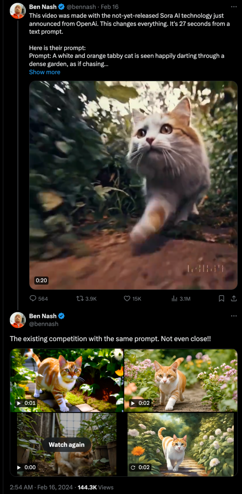就在圈内很多人认为谷歌将要凭借Lumiere和Gemini拿下今年头条的时候,OpenAI仅仅用Sora就轻松获得了更高的关注度。