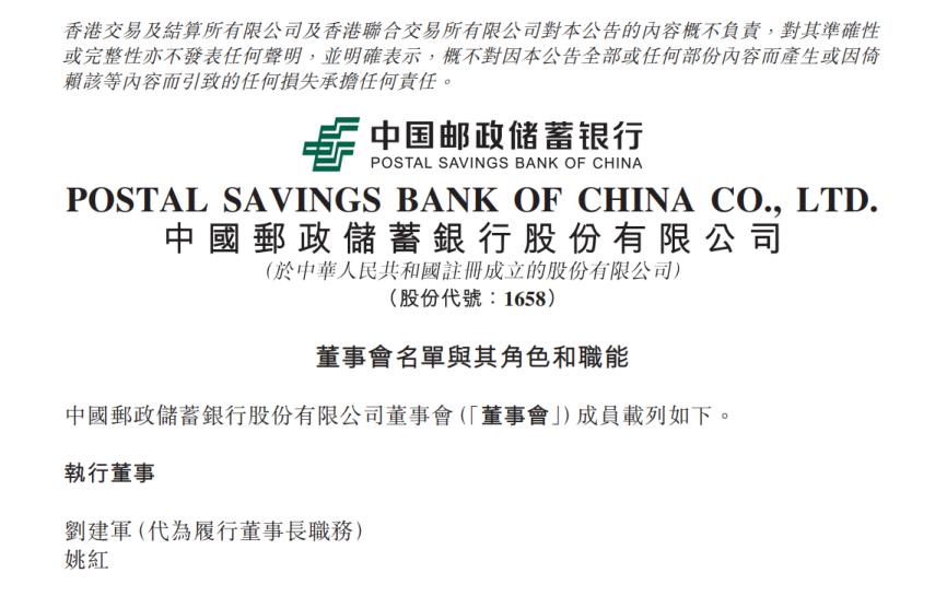 时至2024年1月23日,据邮储银行在港股公告的董事会名单,郑国雨尚未出现在其中。名单显示,代为履行董事长职务的刘建军和姚红为公司执行董事,另有非执行董事6人,独立非执行董事5人。