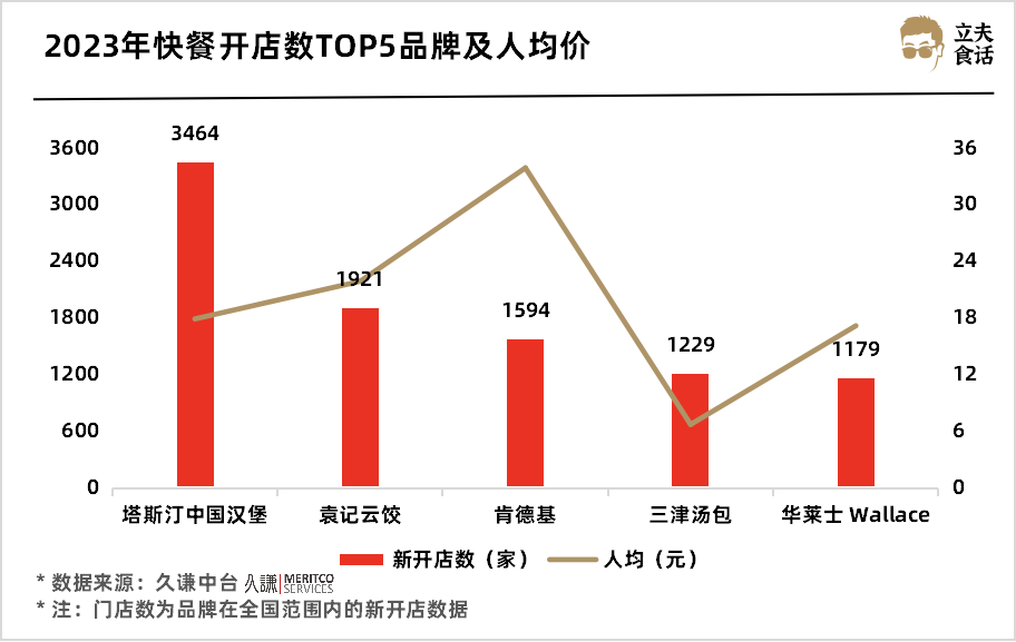 2023年快餐开店数TOP5品牌及人均价