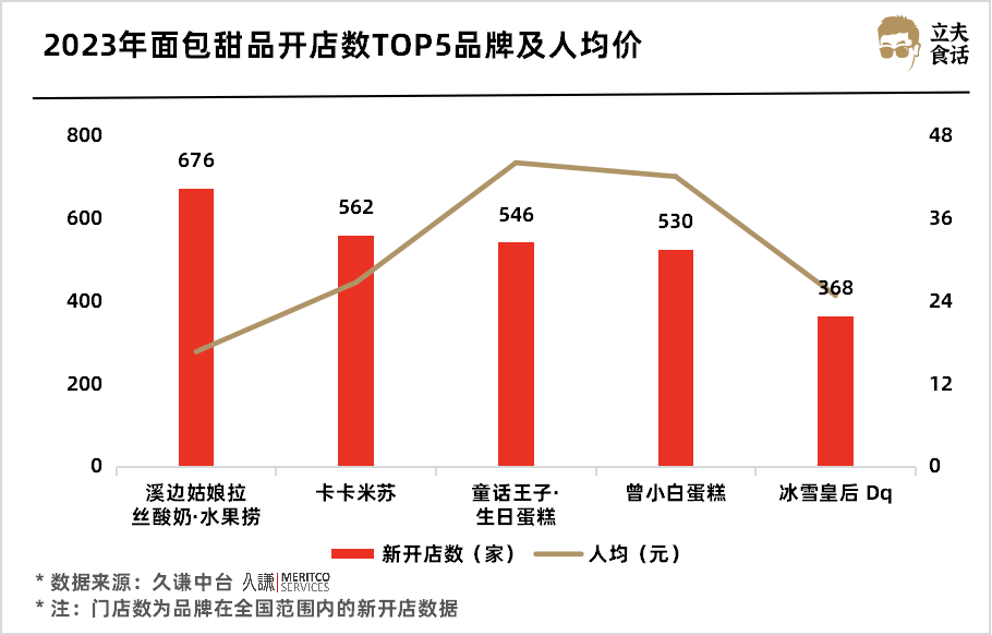 2023年面包甜品开店数TOP5品牌及人均价