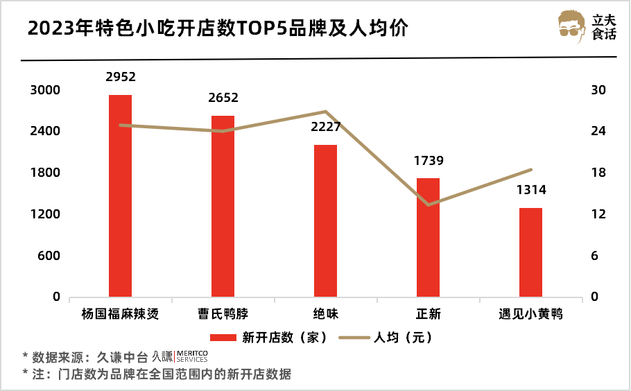 2023年特色小吃开店数TOP5品牌及人均价