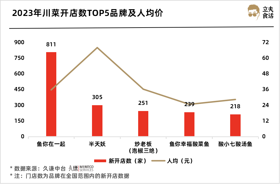 2023年川菜开店数TOP5品牌及人均价