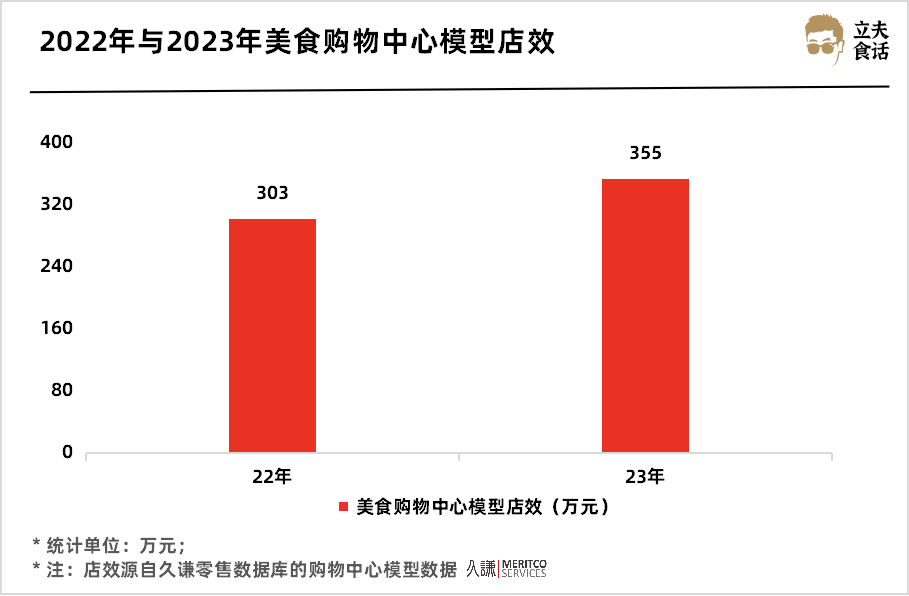 不过从整体营业额来看,2023年我国购物中心内餐饮门店的店效达到355万元,同比上涨17.1%。