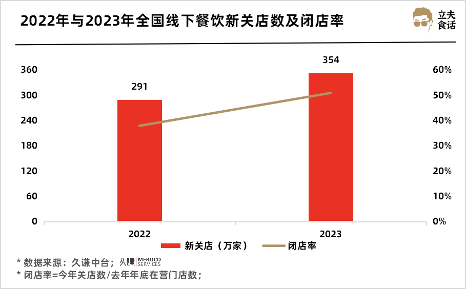 2022年与2023年全国线下餐饮新关店数及闭店率