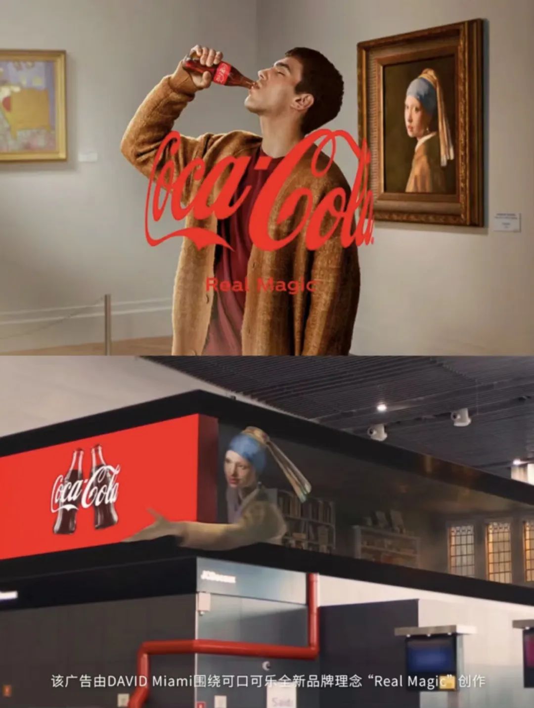 在国内,可口可乐,发布了一支由AI协助制作的短片《Masterpiece(杰作)》,采用 AI(Stable Diffusion + 3D 建模 + 实拍)设计,“复活”了诸多件世界名画作品。