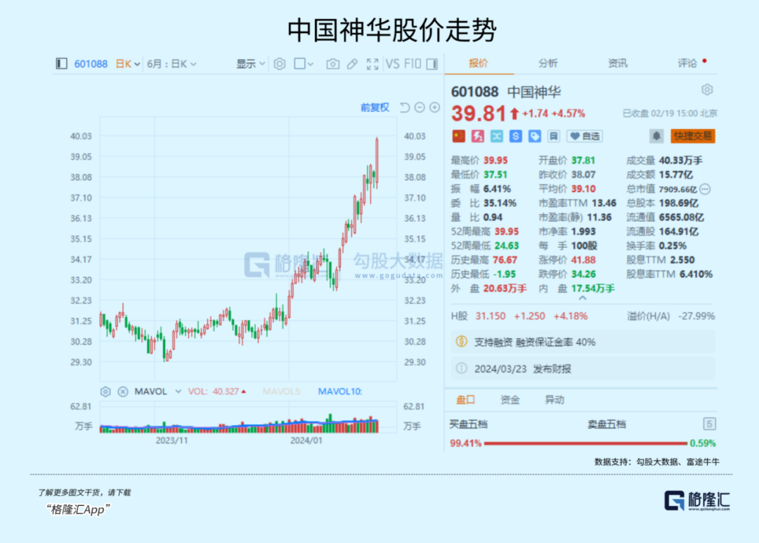 银行ETF(512800)收涨2.2%,煤炭ETF(515220)甚至大涨了4.74%。其中的中国神华,今天收涨4.57%,再次创下了历史新高。