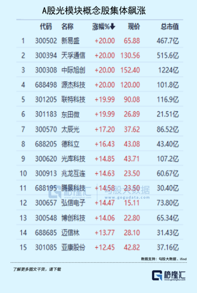 其中,仅AI直接相关的概念股就有超过120家涨幅在10%以上,其中有近二十多股以20%幅度涨停。