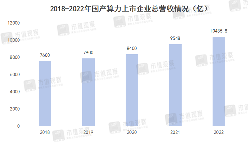 当然,国内算力产业链也会迎来高景气度。据南方财富网数据统计,A股算力相关企业有52家,2022年营收规模为10435.8亿元,同比增长8.5%,为连续5年保持增长。归母净利润为430.64亿元,同比下滑2.6%,但比2018年增长了70%以上。