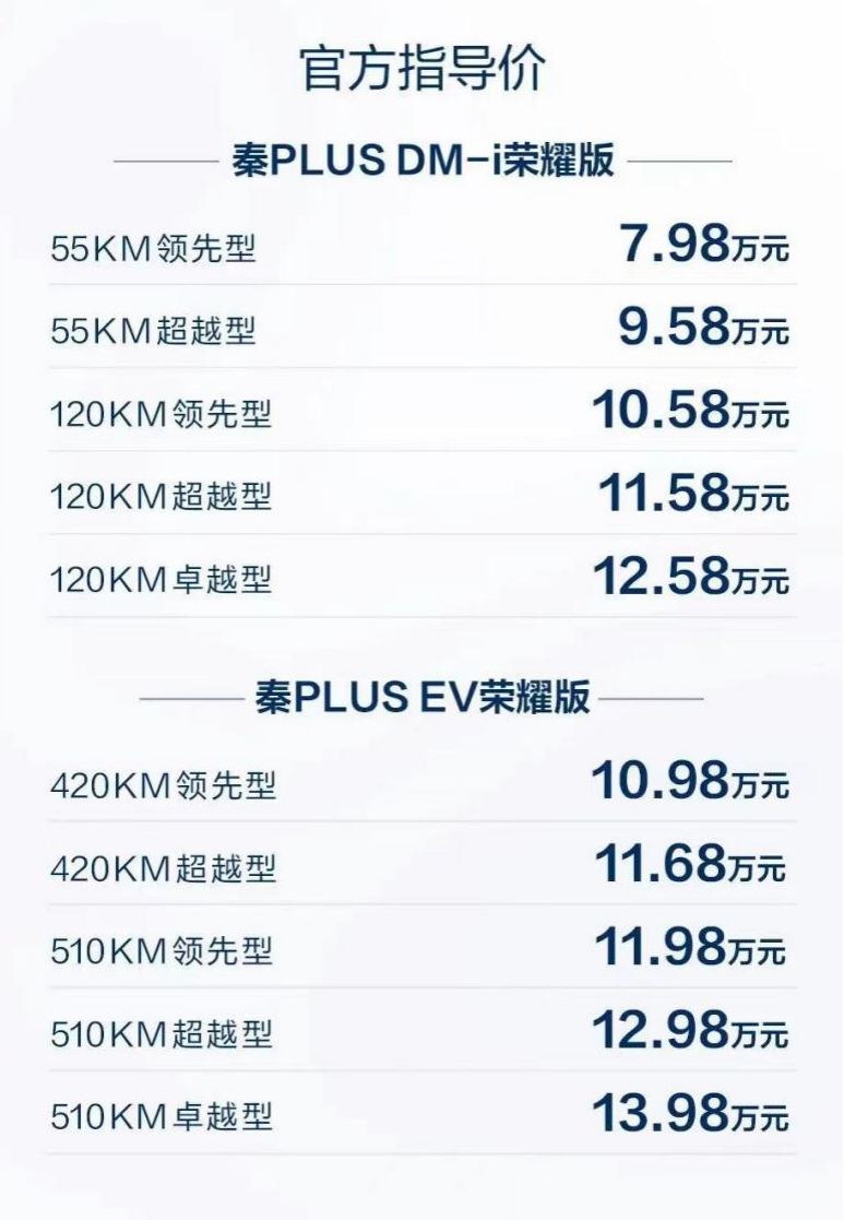 图/秦PLUS DM-i 荣耀版官方指导价 来源/比亚迪公众号 新能源前瞻截图