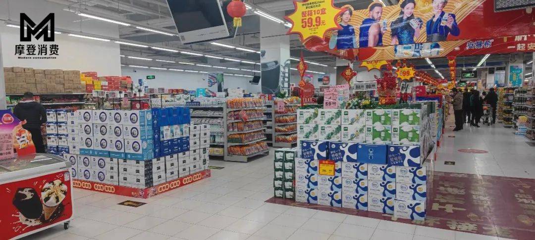 在河北廊坊固安县的临街小店和超市卖场的牛奶区域,各大品牌们各显本事,玩创意、低价,花式抢占着线下营销的黄金地段。