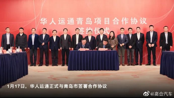 2022年1月7日,华人运通与青岛签署合作协议,项目包括华人运通将在青岛设立中国总部,并成立高合汽车销售服务总公司,打造面向全球的世界级研发技术中心等。高合汽车因此成为了《青岛“十四五”制造业高质量发展规划》中“大力推进新能源汽车高端化发展”目标的组成部分。