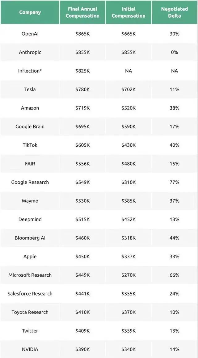 从图中可以看出,OpenAI的为员工提供的年薪高达86.6万美元,底薪为66.5万美元,薪资增幅可达30%。
