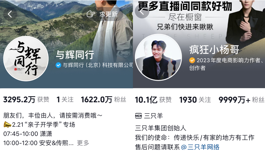 一般情况下,粉丝数量是影响销售额的核心因素。但截至目前,“与辉同行”的粉丝数刚刚超过1600万,疯狂小杨哥的粉丝数超过了一个亿,前者只是后者的零头。这反过来证明了一件事,愿意为董宇辉这个IP买单的“活粉”数量,要比疯狂小杨哥多出不少。