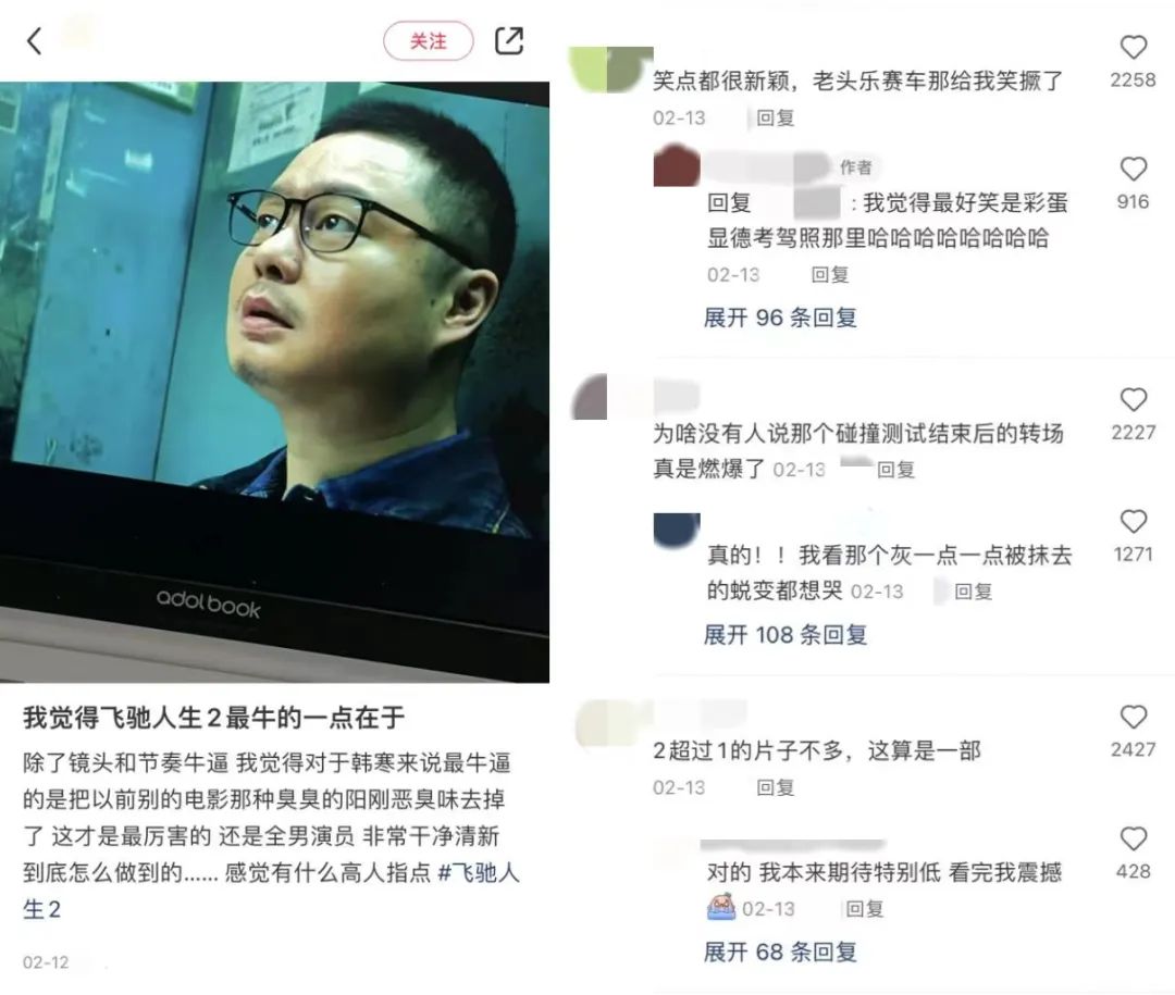 对于《飞驰人生2》,部分小红书用户同样给出了极高的评价。虽然影片中没有女性主演,但全男阵容仍旧被认为“非常干净清新”。